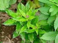 春になってから花壇に根鉢をくずさないようにして宿根ロベリアの苗を植えました。