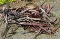 試しに葉を細く縦に裂いてから強く引っ張ってみましたが、切れなくて繊維が固くて丈夫でした。