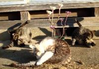 近所の子猫たちが毎日親猫と一緒に遊びにきています。