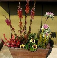 この寄せ植えは外に出したままです。前に植えたの影になってしまい、下の部分が見えませんね・・