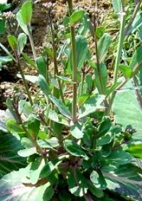 他の植物の陰でひょっろと育ってしまった踊り葉牡丹(オドリハボタン。
